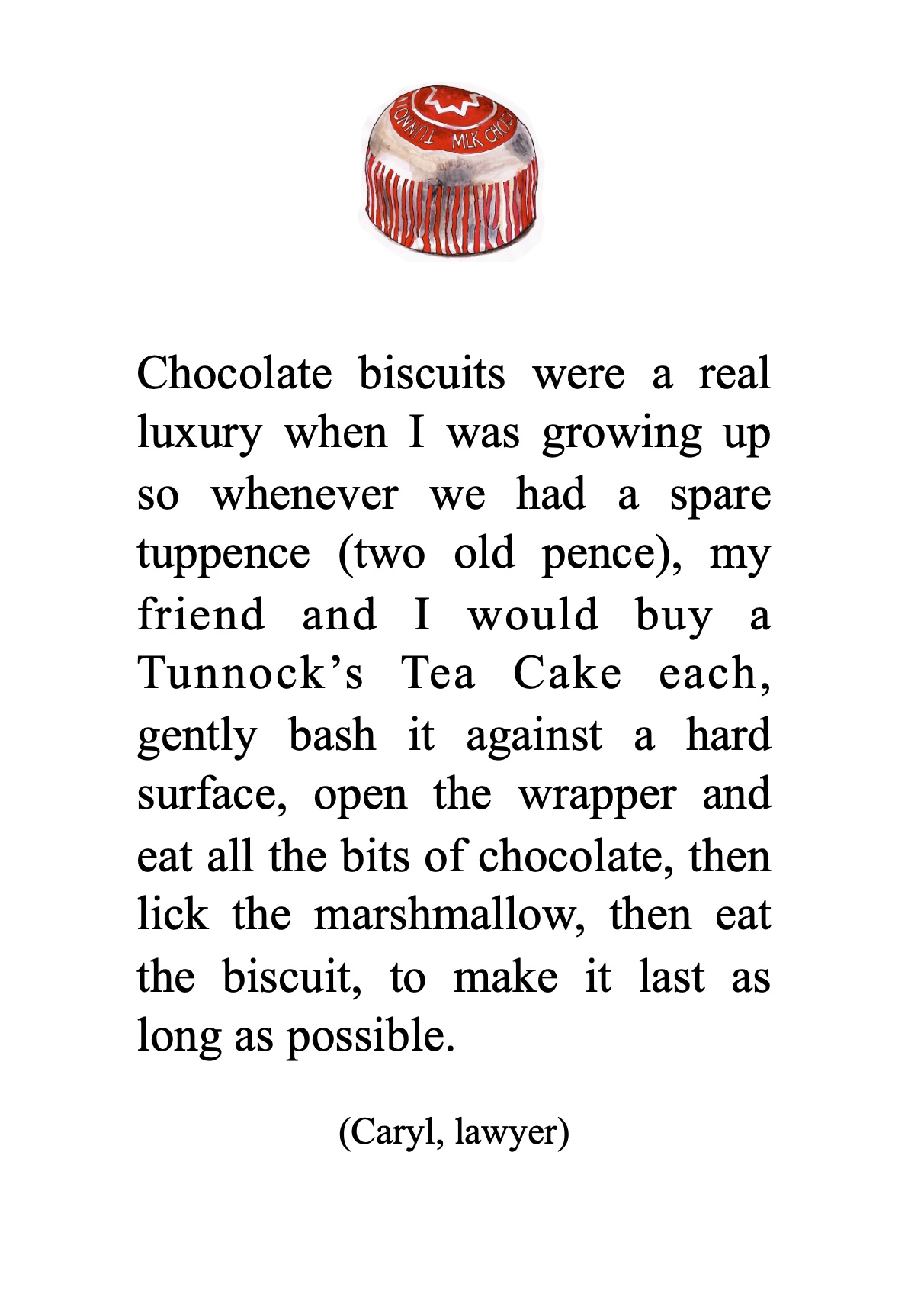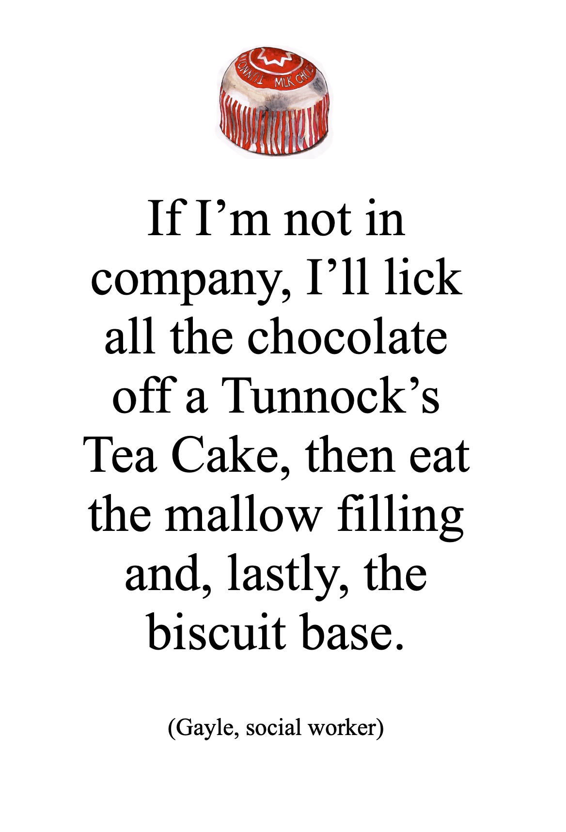 If I'm not in company, I'll lick all the chocolate off a Tunnock’s Tea Cake, then eat the mallow filling and, lastly, the biscuit base.